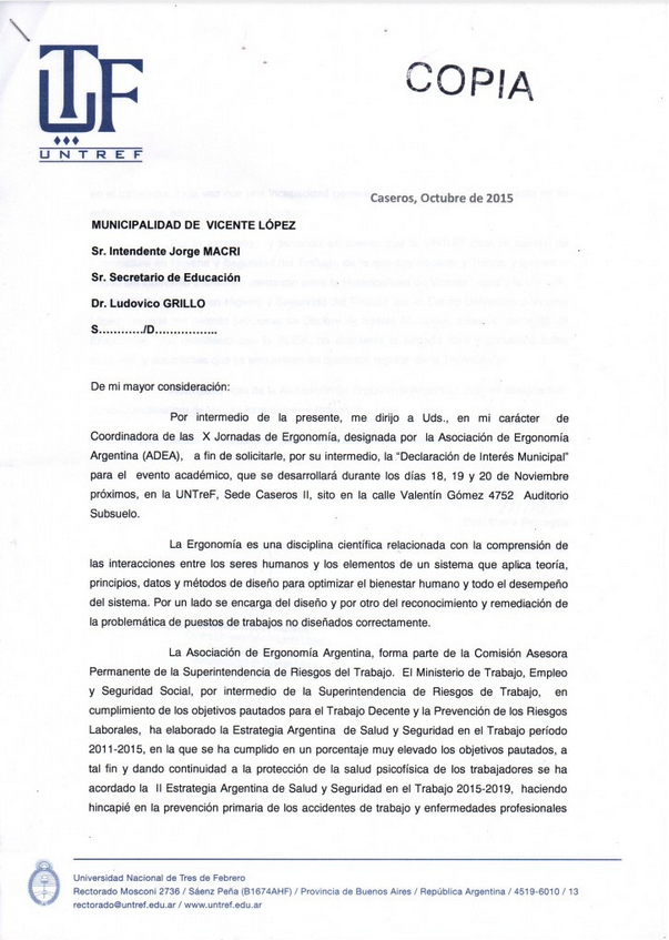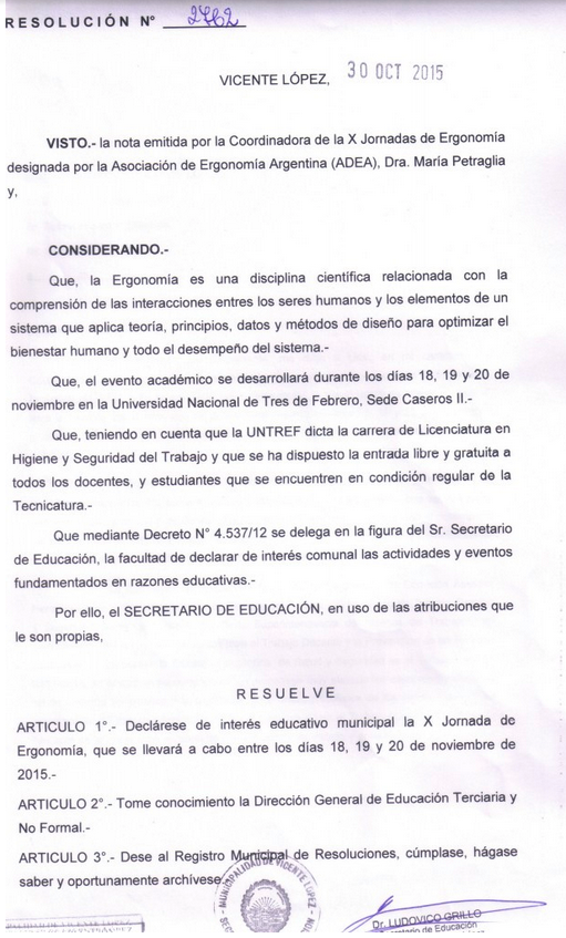 Novedades 17 noviembre 2017 Declaración de interés Municipal de Vicente Lopez y Lobos de las X Jornadas